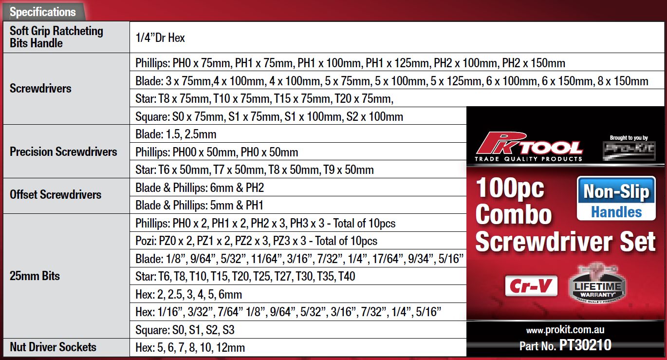100pc Screwdriver Set with Handy Storage Rack - Pro-Kit
