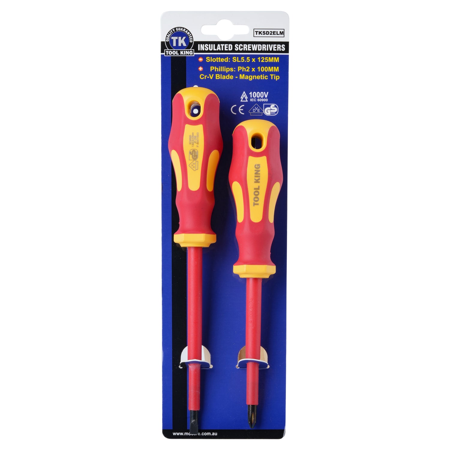 Electricians S/driver Set 2 Pce Set Medium 5.5 X 125 / Ph2 X 100 Vde - Tool King
