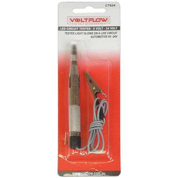 The Circuit Tester 6, 12 & 24 Volt – Brass/Metal Housing – Voltflow is a robust and versatile tester ideal for automotive electricians. Featuring a brass and metal housing, it is designed to withstand tough conditions. The tester is capable of testing 6, 12 and 24 volt systems, making it a great choice for a wide range of automotive applications.