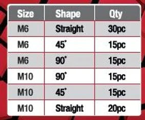The assortment contains straight, 45°, and 90° angled grease nipples in both M6 and M10 sizes, allowing for reliable lubrication access even in hard-to-reach areas. Manufactured for durability and leak-free performance, these fittings are perfect for servicing vehicles, industrial machinery, and agricultural equipment.