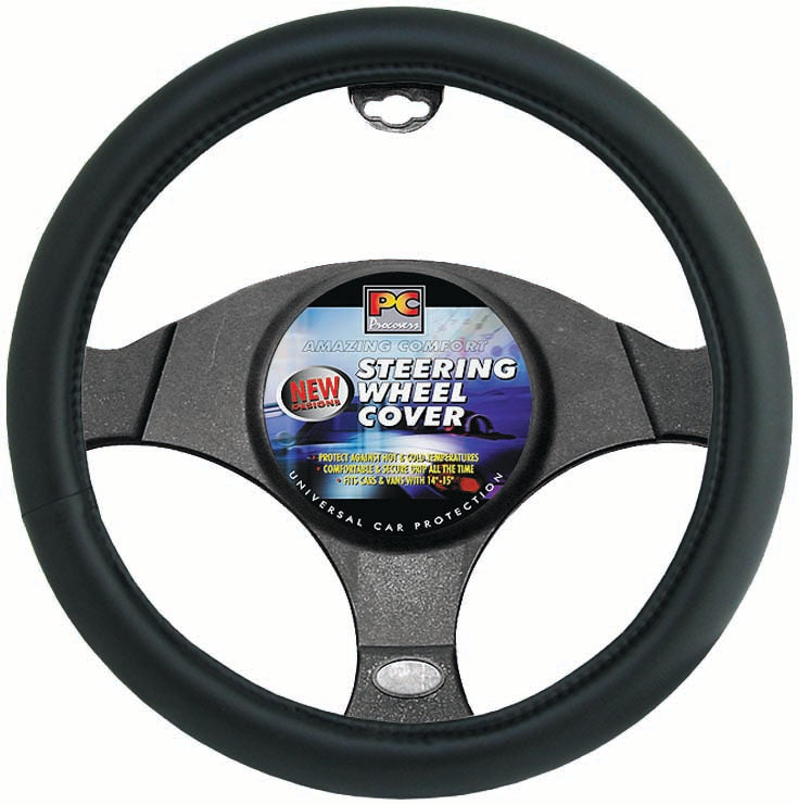 40cm Steering Wheel Cover Smooth Leather Look Black - PC Procovers