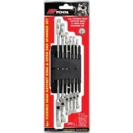 6 Pieces Metric CR-V Flexible Ratchet Combination Spanner Set - PKTool