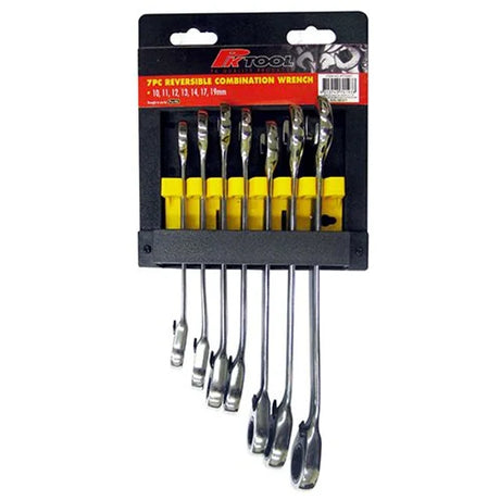 7 Pieces Metric Reversible CR-V Ratchet Combination Spanner Set - PKTool