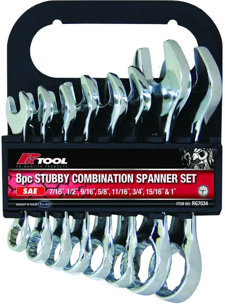 8 Pieces SAE CR-V Combination Stubby Spanner Set - PKTool