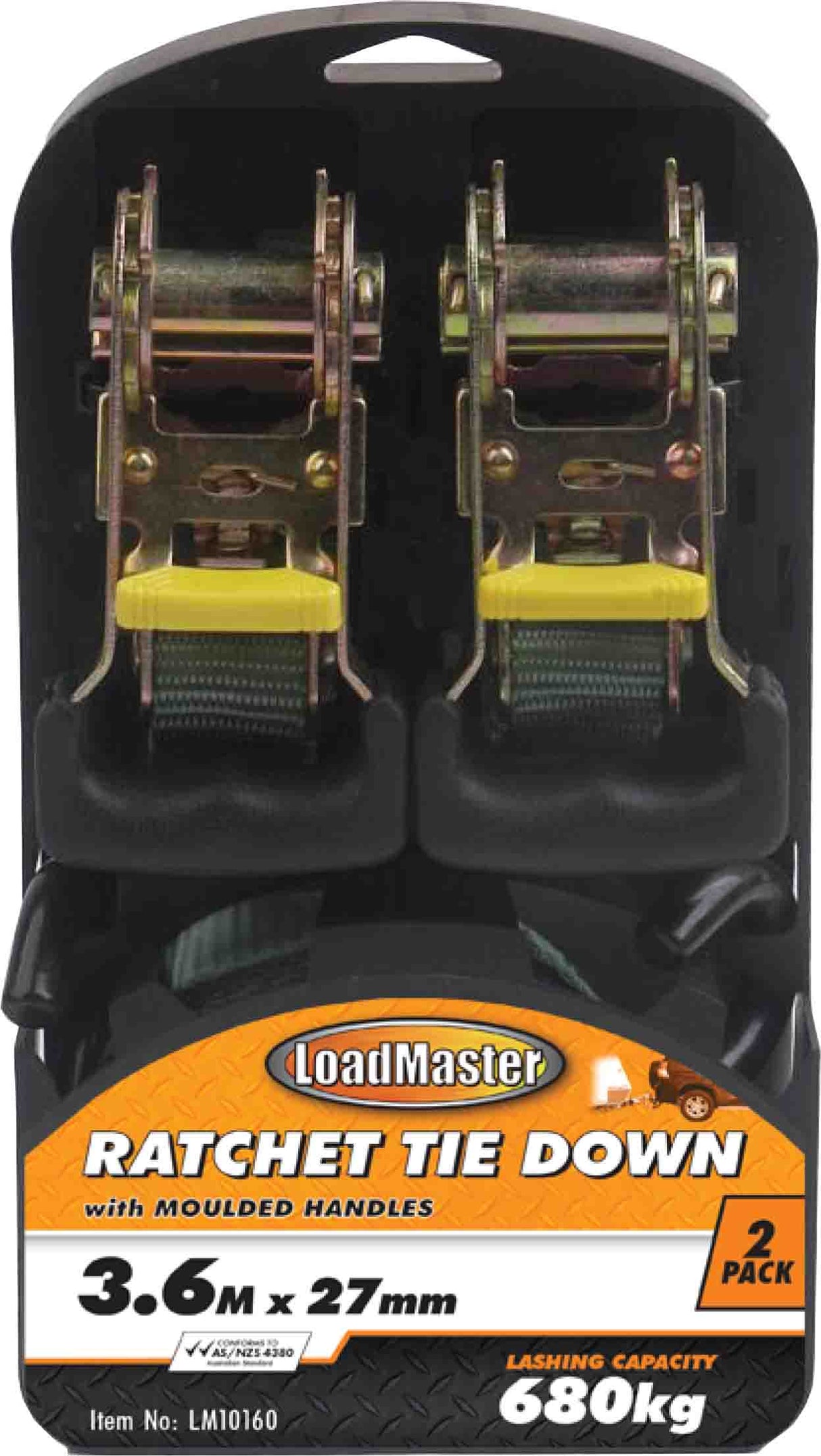 2 Pieces 3.6 Meter Ratchet Tie Down Set, Heavy Duty Hooks - LoadMaster