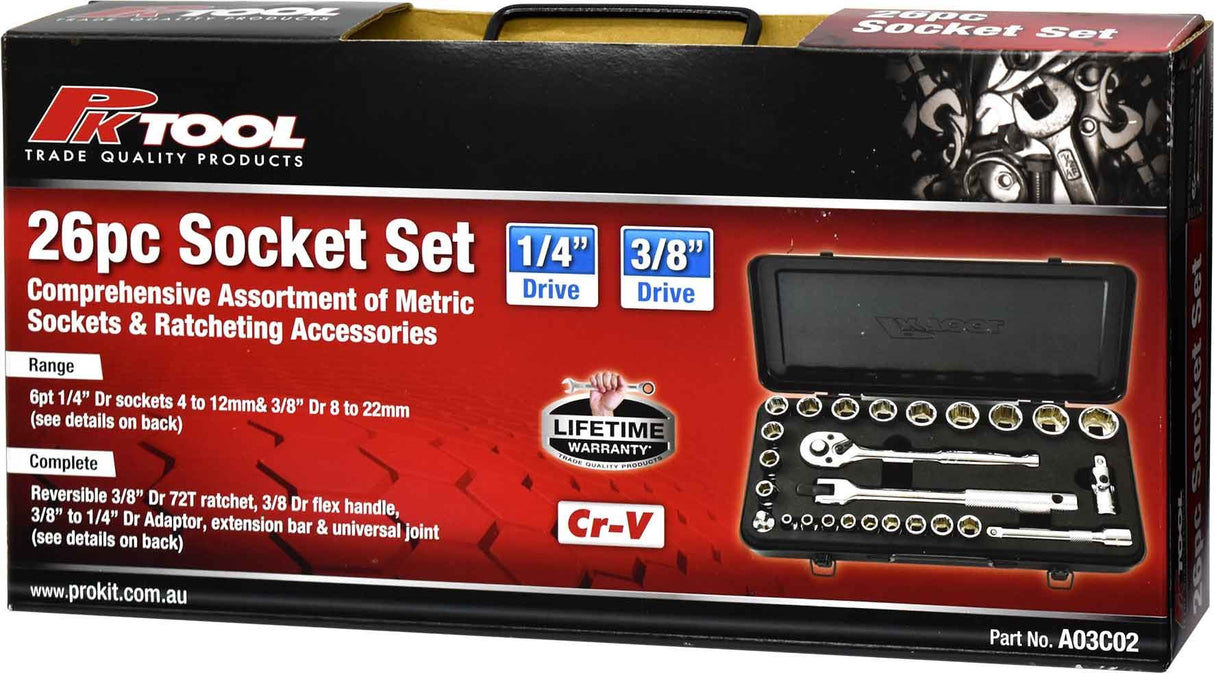 • A broad range of 1/4” & 3/8” Dr hex sockets are ideal for most vehicle requirements