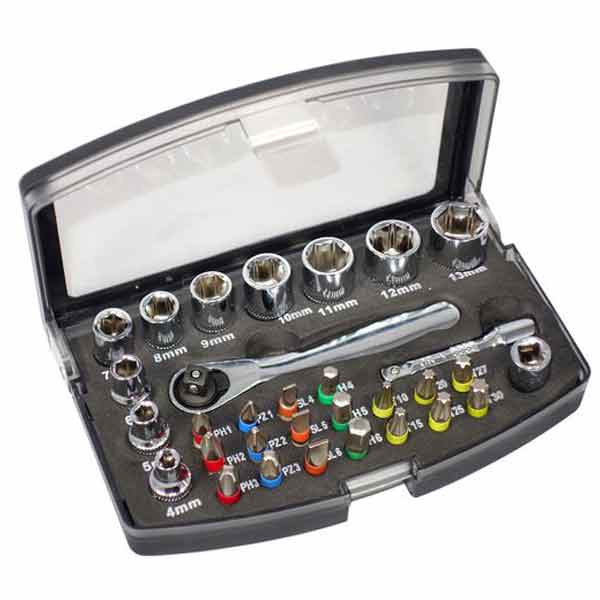 Mini Socket & Bit Set 31 Piece With Carry Case 1/4" Drive - Tool King