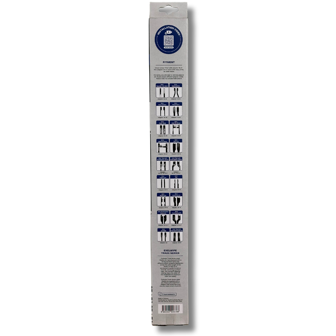 The eXelwipe EXUNI-18-450 is a premium 18-inch (450mm) flexible flat wiper blade designed to deliver clear, streak-free visibility in all weather conditions. Its advanced flat-blade construction ensures even pressure across the windscreen, resulting in smooth, quiet, and consistent wiping performance.