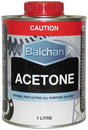 Balchan Acetone 1L is a high-purity solvent ideal for a wide range of industrial and laboratory applications. Known for its excellent cleaning and degreasing properties, it effectively removes adhesives, paints, and oils from surfaces. Its fast evaporating nature ensures minimal residue, making it perfect for precision cleaning and preparation tasks. Suitable for use in automotive, manufacturing, and cosmetic industries, this acetone provides reliable performance and consistency. Packaged in a convenient 1-liter bottle, it offers an efficient solution for both professional and technical needs.